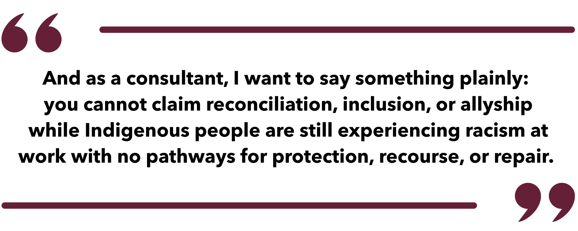 Training on its own won’t fix this. Complaint procedures on their own won’t fix this. It’s the integration, and the trust that Indigenous employees have in those systems, that matters. And trust is created through truthacting, not just truthlistening.